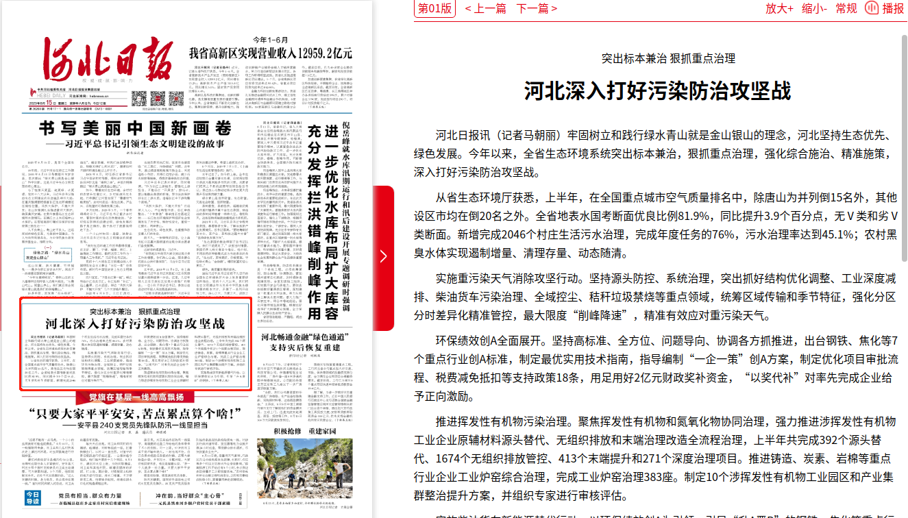 河北日报:突出标本兼治 狠抓重点治理 河北深入打好污染防治攻坚战