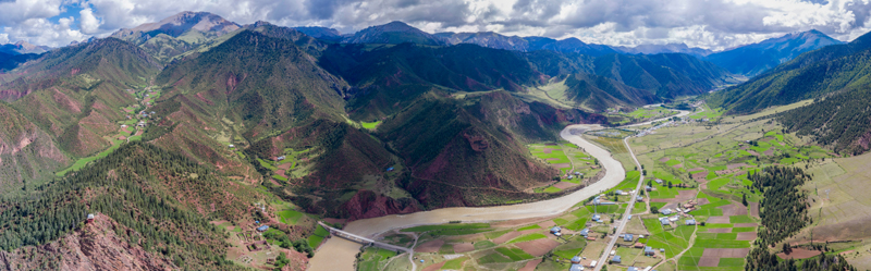 6月22日在国道317线昌都段类乌齐县附近拍摄的河谷景观(无人机照片)。