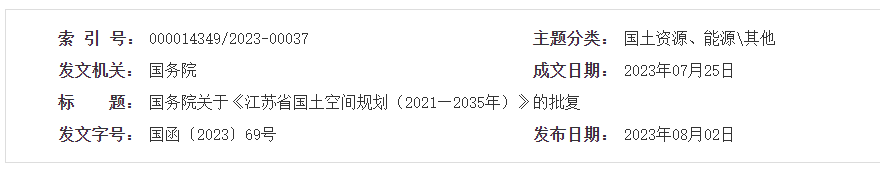 国务院关于《江苏省国土空间规划 (2021—2035年)》的批复 国函〔2023〕69号