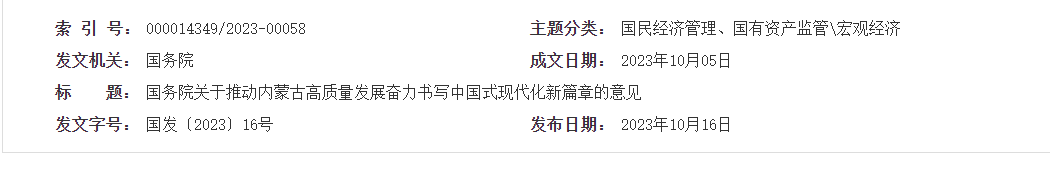 国务院关于推动内蒙古高质量发展