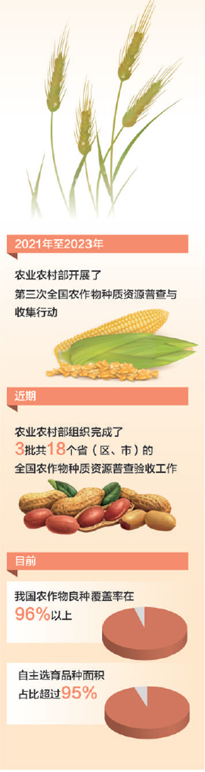 近期,农业农村部组织完成了3批共18个省(区、市)的全国农作物种质资源普查验收工作。下一步,还将开展其余13个省(区、市)及新疆生产建设兵团普查验收,确保全面完成资源收集任务。